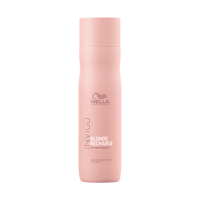 Wella Invigo Cool Blond Shampoo with colour pigments. Refreshes and maintains the brightness and vibrancy of natural or highlighted blondes. This violet shampoo prevents natural or coloured blonde hair from yellowing and helps to eliminate brassiness, leaving it soft to the touch. Apply to wet hair and lather. Leave for 3-5 minutes, then rinse thoroughly.